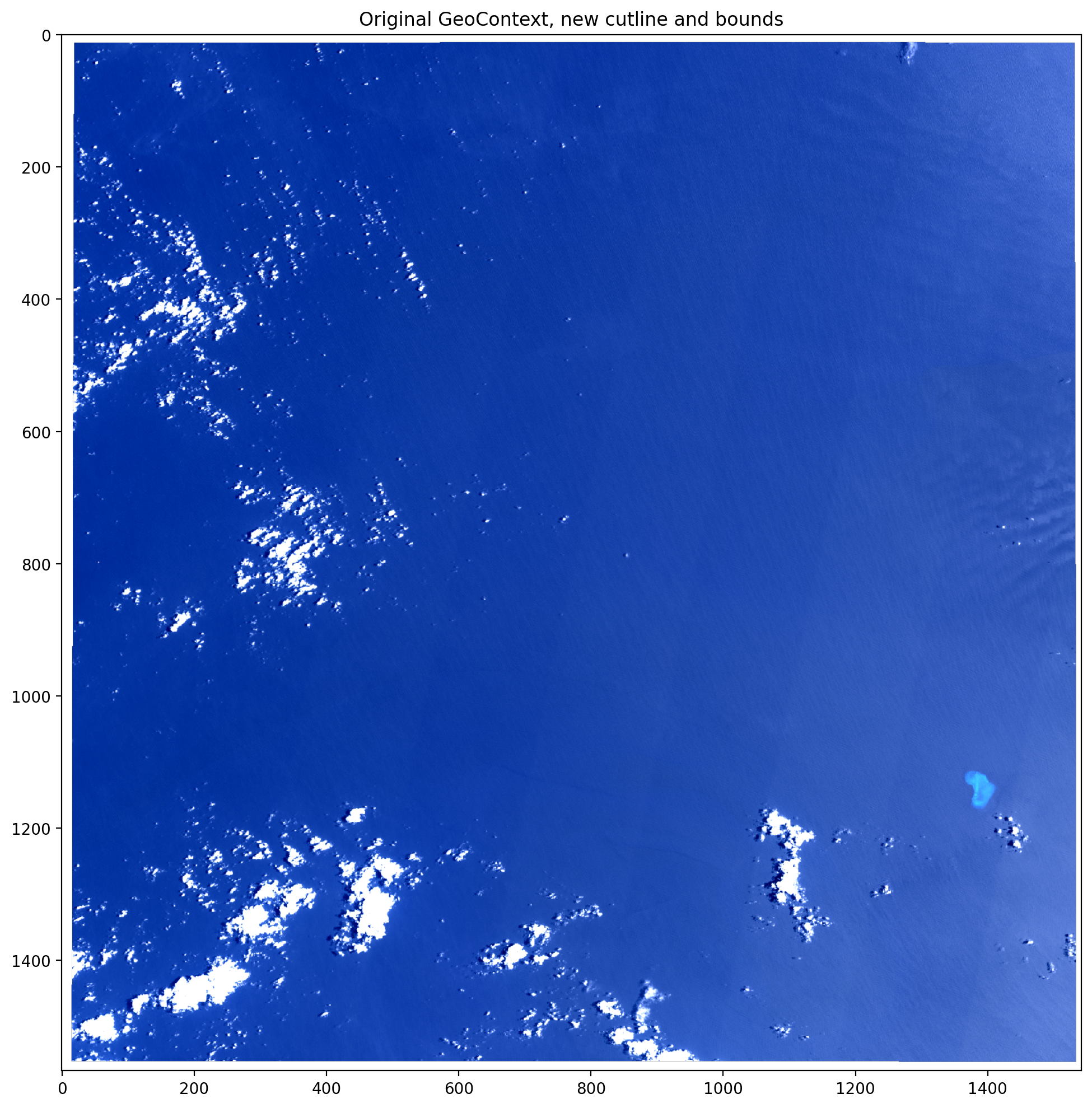 >>> display(cutline_bounds_arr, title="Original GeoContext, new cutline and bounds")