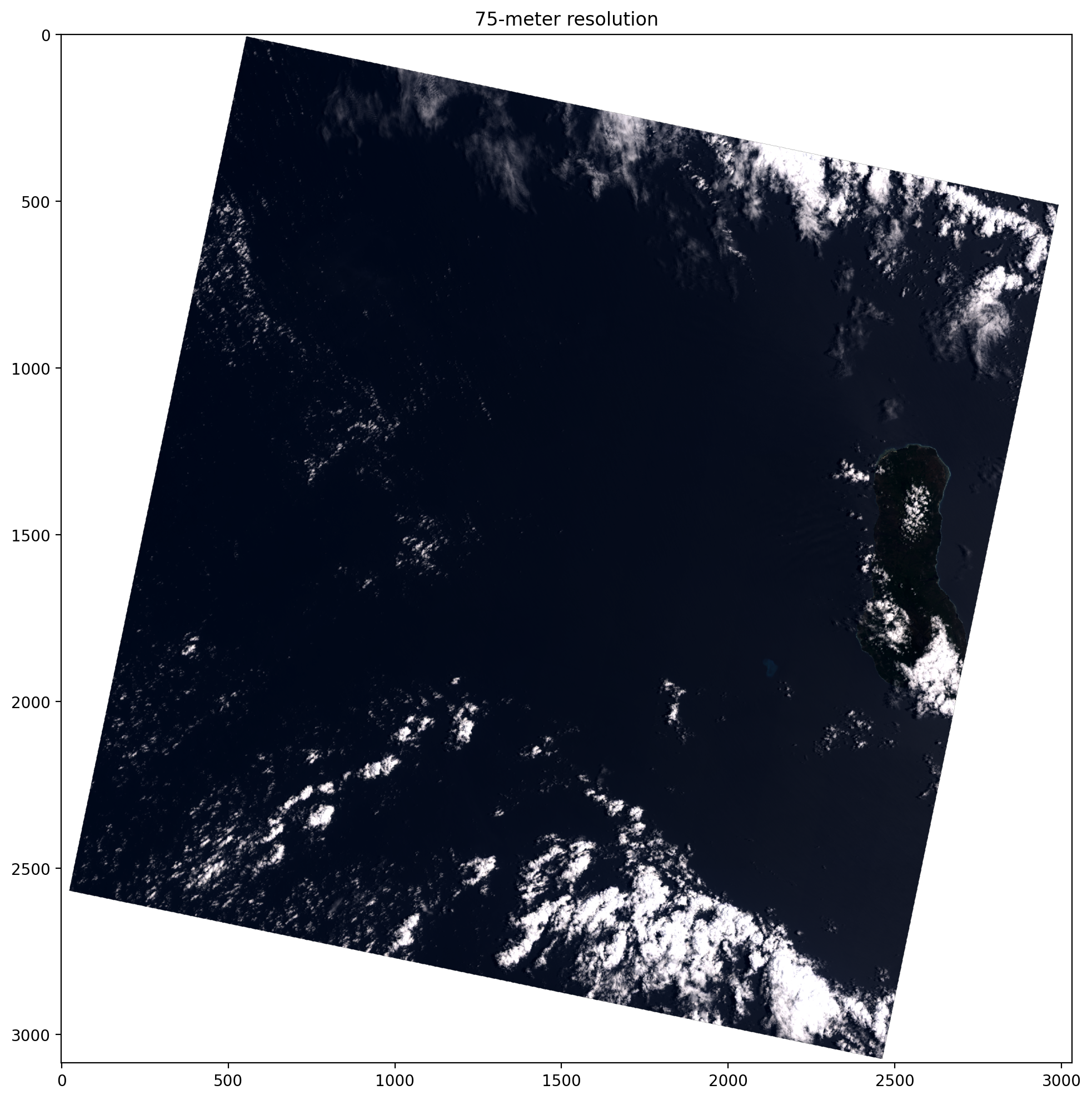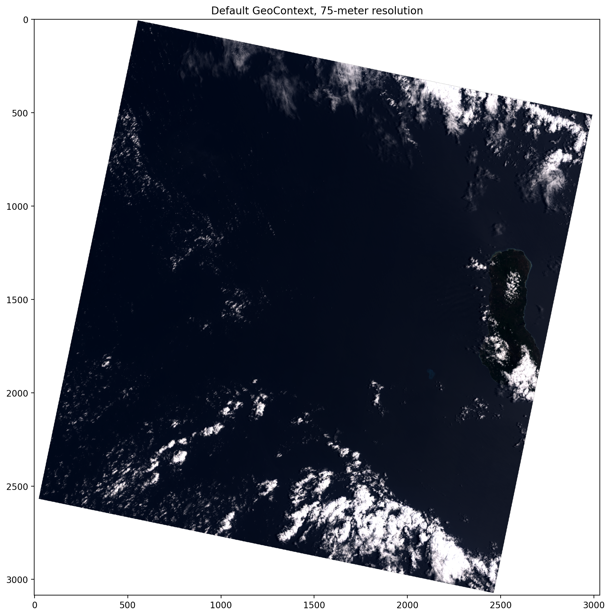 >>> display(lowres_arr, title="Default GeoContext, 75-meter resolution")